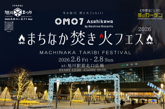 冬の旭川駅前を舞台に、焚き火のぬくもりと食を楽しむイベント「まちなか焚き火フェス2026」が開催されます。